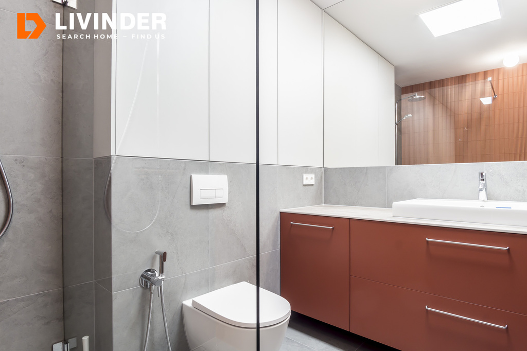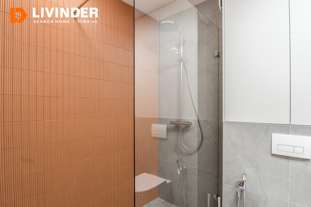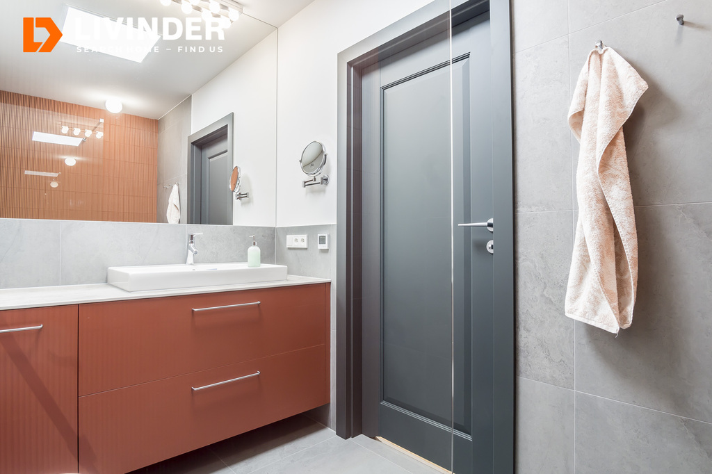 W łazience znajduje się ogrzewanie podłogowe.