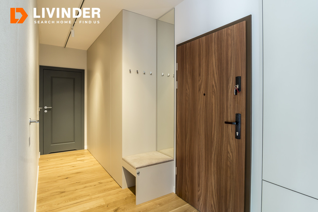 W przedpokoju znajduje się pojemna szafa w zabudowie.