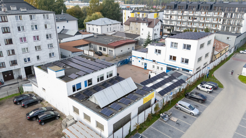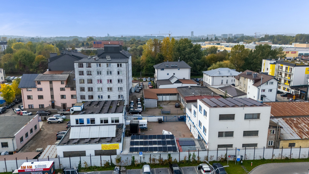 Na dachu znajduje się nowa instalacja fotowoltaiczna o mocy 40 kW (budowa 2025). Ogrzewanie z sieci MPEC. Na terenie nieruchomości dostępne są miejsca postojowe, a dodatkowo obok znajduje się duży parking należący do centrum handlowego.
