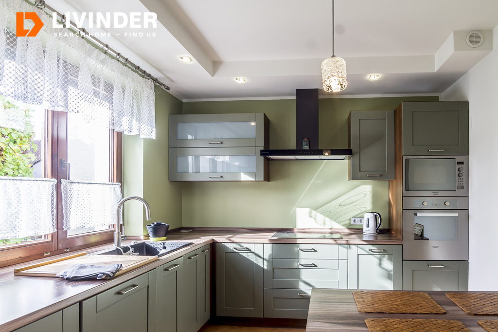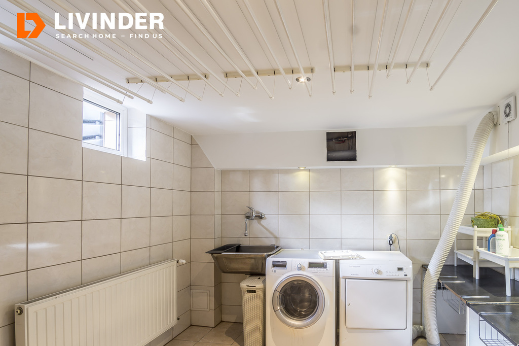 W cenie pozostaje zabudowa kuchni wraz ze sprzętem AGD (lodówka, zmywarka, piekarnik, płyta, mikrofala), a także pralka, suszarka, garderoby w sypialniach i dodatkowa lodówka w piwnicy.