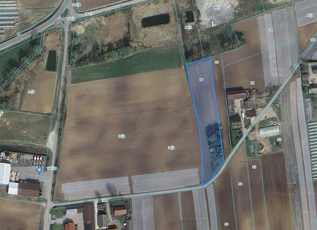 Działka rolna o  wymiarach prostokata 37,50x180m 157mx45 m. W Studium i w  MPZP  w całości jest w terenach rolnych R1, może tu zaistnieć tylko  zabudowa zagrodowa.
