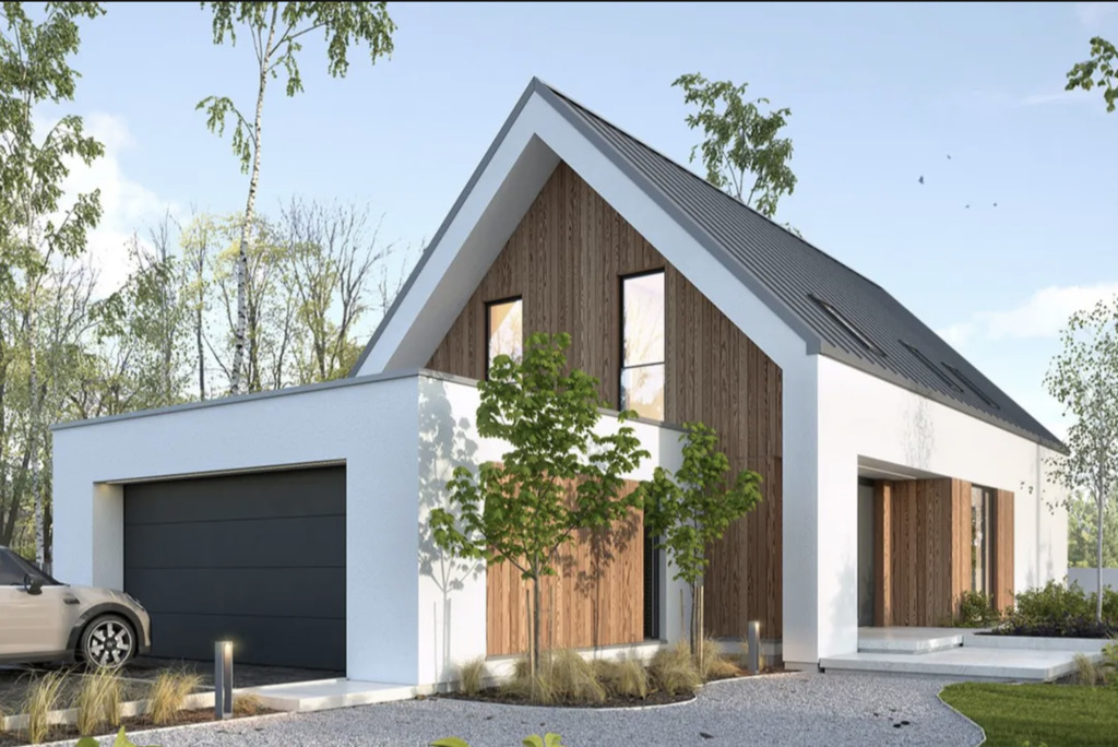 Dom zaprojektowany według projektu Dom Idealny M1 łączy nowoczesną architekturę, funkcjonalność i komfort codziennego życia.