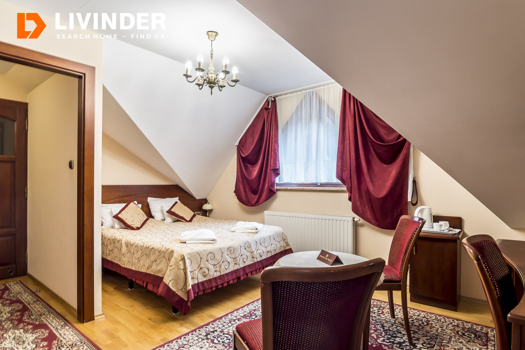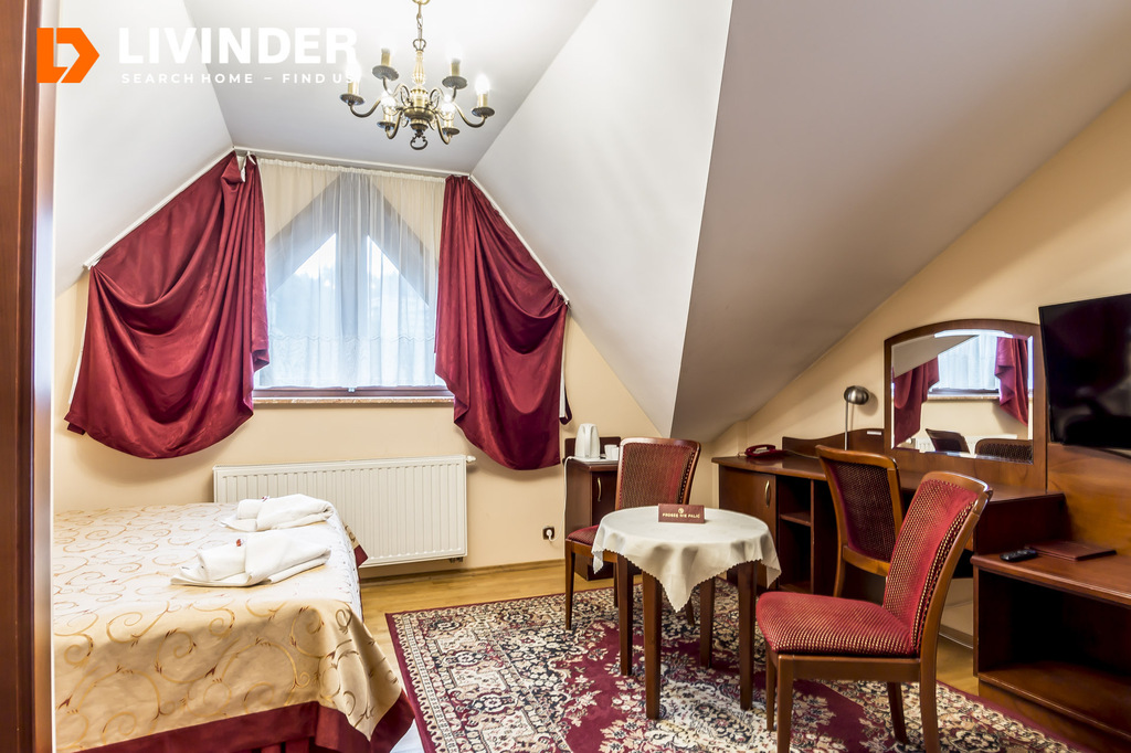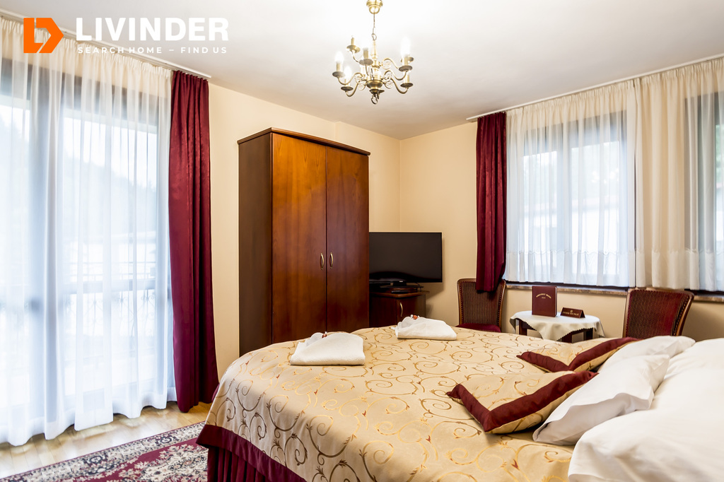 Pensjonat oferuje 10 pokoi z łazienkami, przestronną kuchnię oraz jadalnię. Na dole znajduje się strefa relaksu z sauną, jacuzzi i dodatkową łazienką, co zapewnia komfort i wypoczynek dla gości. To idealne miejsce na inwestycję w branży hotelarsko-turystycznej lub na własny komfortowy dom w spokojnej okolicy. Zapraszamy do kontaktu w celu uzyskania szczegółowych informacji!