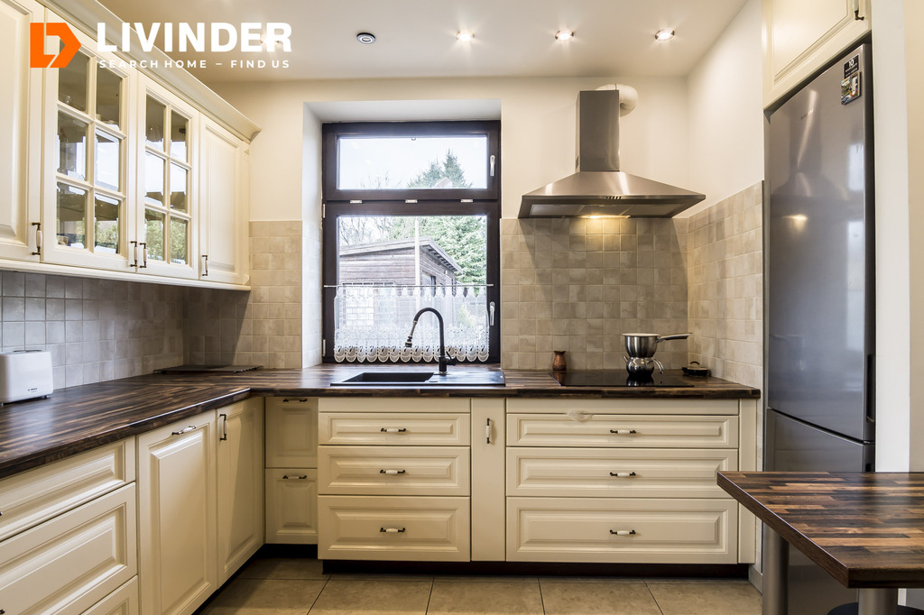 Parter:- Kuchnia: Oddzielna słoneczna jasna kuchnia w kwadracie z pełnym sprzętem AGD