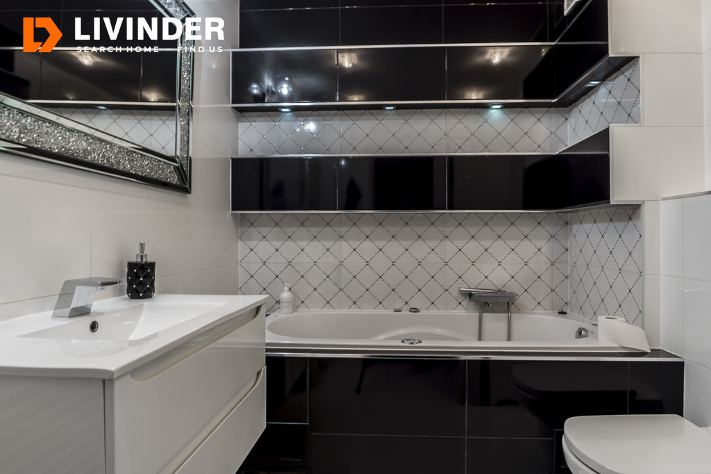 *łazienka (wanna z hydromasażem, umywalka, WC, grzejnik drabinkowy)