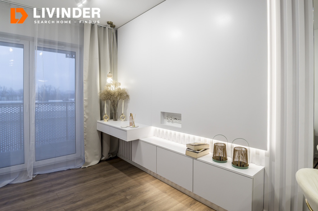 Przestrzeń dzienna bardzo dobrze doświetlona, z wyjściem na balkon. Dwie oddzielne sypialnie zapewniają komfort rodzinie, parze lub najemcom.
