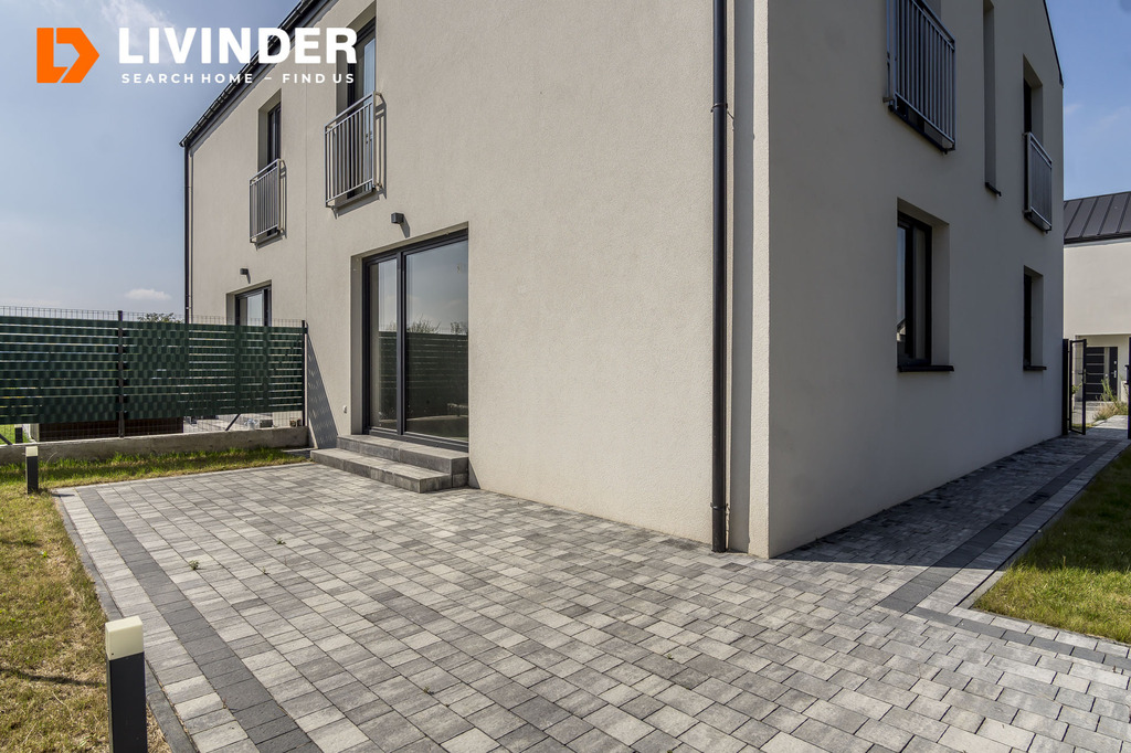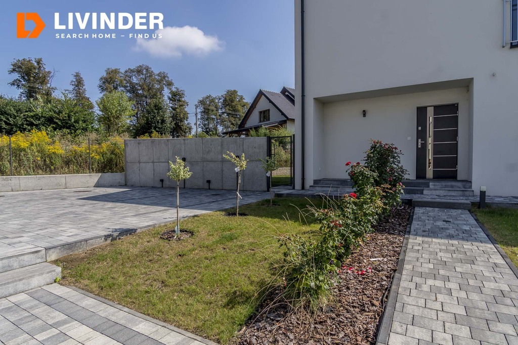 podjazd, podejście i taras z kostki brukowej grafitowej, teren zadbany i przystosowany.