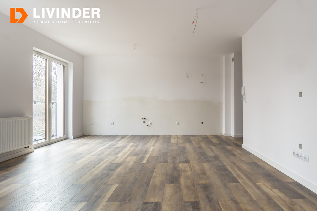 - Salon z aneksem oraz wyjściem na balkon 26.74m²