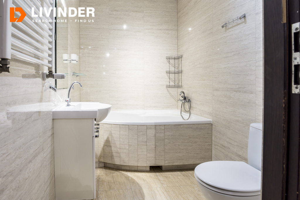* łazienka (wanna, WC, umywalka, grzejnik drabinkowy)