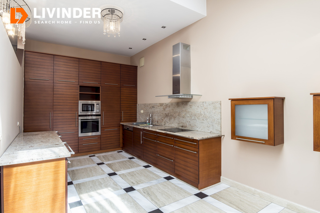 Lokal jest wyposażony jak na zdjęciach – w kuchni zabudowa meblowa wraz ze sprzętem AGD (płyta indukcyjna, piekarnik, mikrofala, zmywarka, zlewozmywak, wyciąg). W łazienkach pełne wyposażenie sanitarne. Pomieszczenia są klimatyzowane, jasne i dobrze doświetlone.