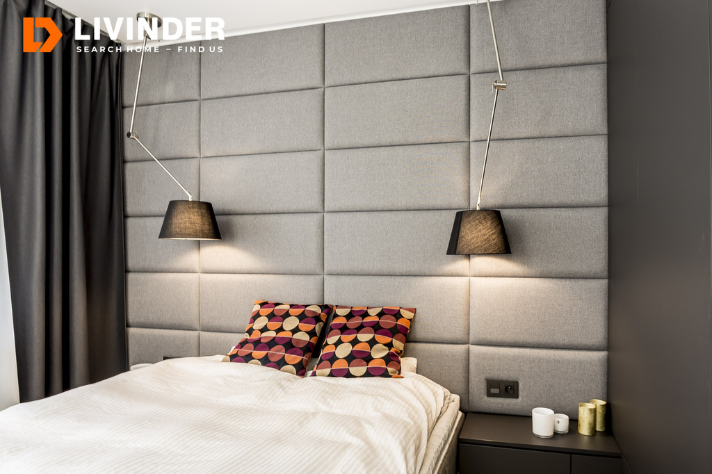 - Sypialnia: duże, komfortowe łóżko, szafki nocne i pełna zabudowa meblowa
