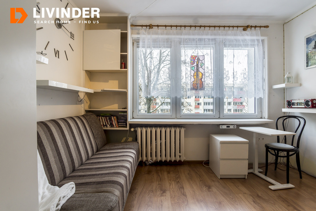 • Drugi pokój – idealny jako sypialnia, pokój dziecka lub gabinet. Znajdują się w nim: szafa Ikea, półki, komoda i biurko.
