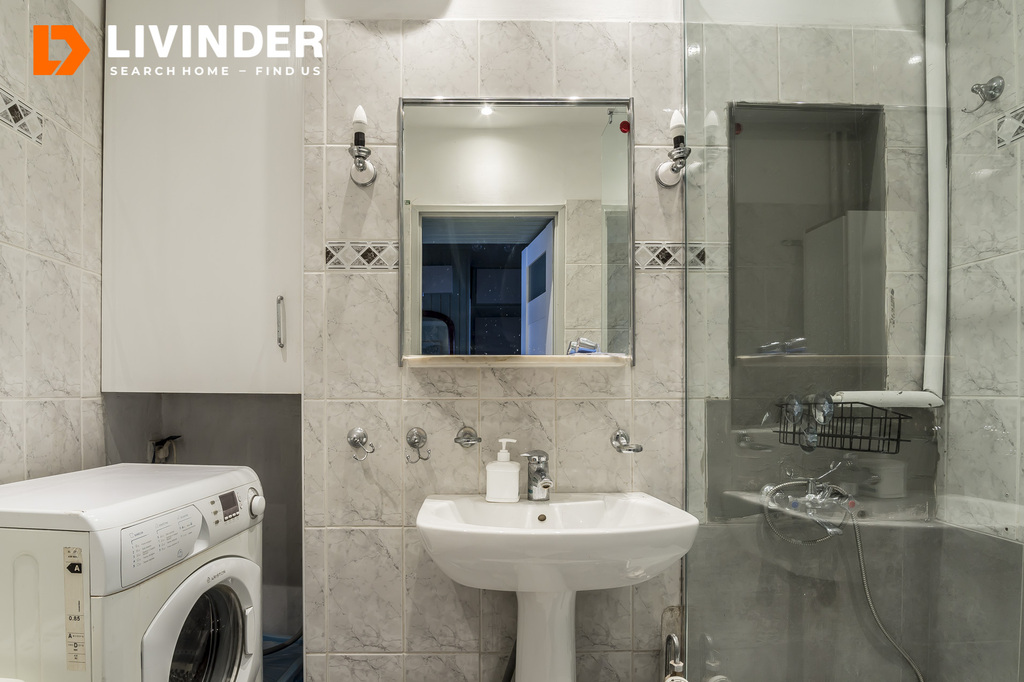 • Łazienka – z pralką, szafką i kabiną prysznicową 100×70 cm. Ciepła woda i ogrzewanie z MPEC.