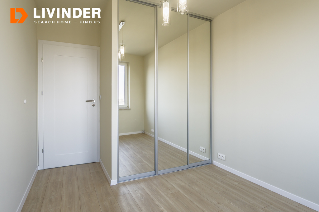 • 2 sypialnie - w obu pokojach znajdują się duże, pojemne szafy na wymiar, zapewniające dużo miejsca do przechowywania